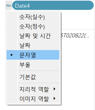 - 방법 1 : Date1 우클릭 -> 데이터 유형 변경 -> 날짜 선택