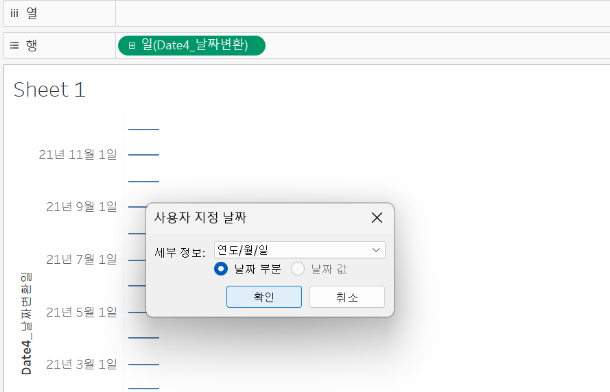 - 확인 시 '연'으로만 되어 있으면 우클릭 -> 사용자 지정 날짜에서 원하는 타입으로 변경하면 원하는 타입으로 볼 수 있음