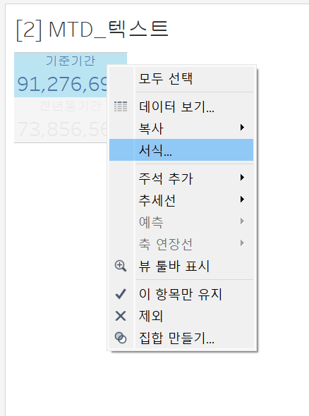 - 시각화 차트에서 마우스 우클릭 - 서식