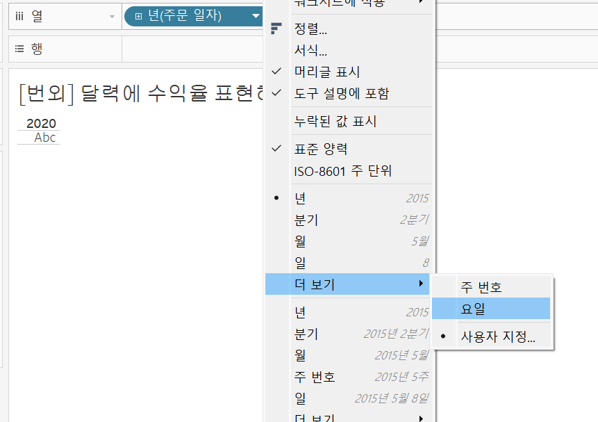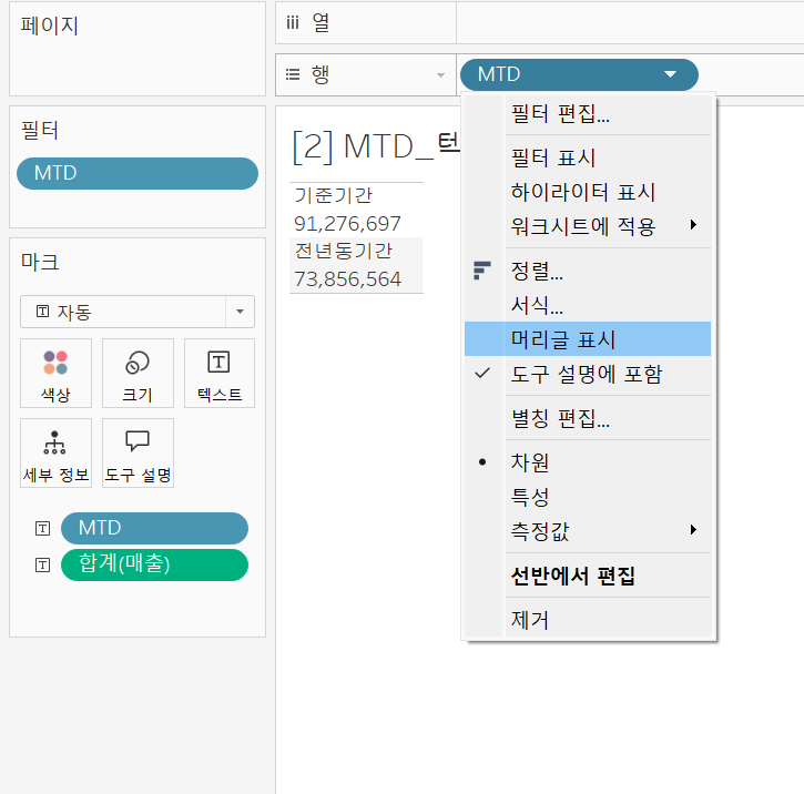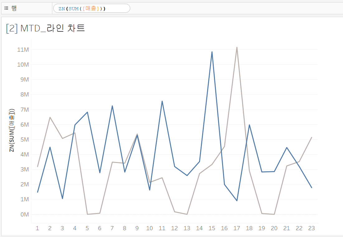 - 행 더블 클릭 - ZN(SUM(매출))로 변경