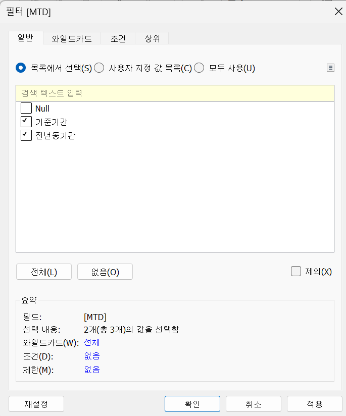 - 필터 - 기준월/월일