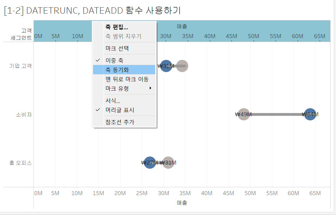 2. 덤벨 차트로 매출 비교하기