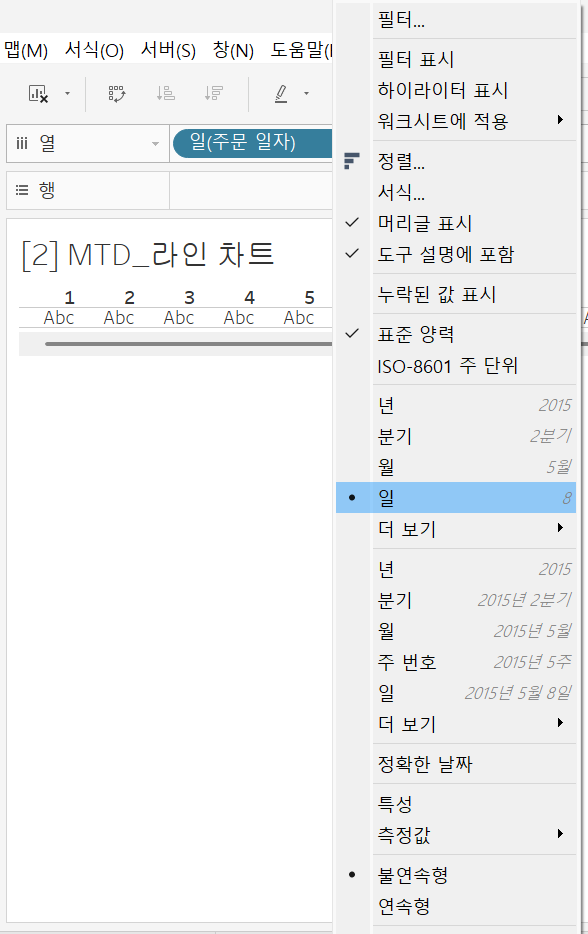 - 우클릭 - 불연속형 (일) 선택