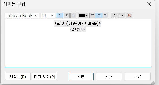 - 합계(매출) - 크기 : 14
