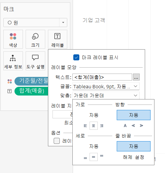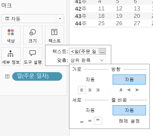 - 마크 - 레이블(텍스트) : 주문일자