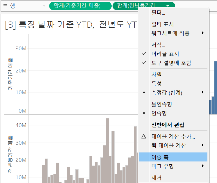 - 전년동기간 매출 - 이중축