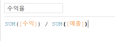 - SUM([수익]) / SUM([매출])