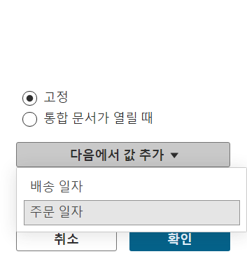 - 고정 - 다음 값에서 추가 - 주문 일자