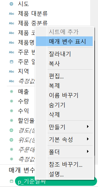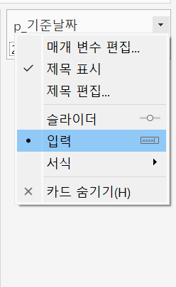 - 생성된 매개 변수 p_기준 날짜 -> 매개 변수 표시