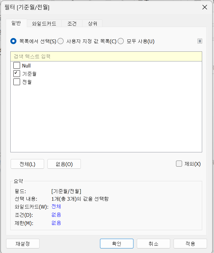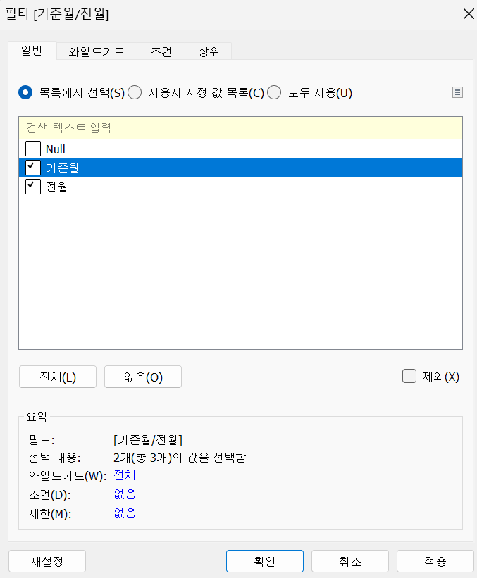 - 필터 - 기준월/전월