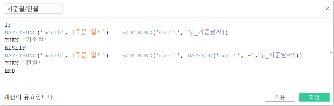 DATEDIFF('month', [주문 일자], [p_기준날짜]) = 0