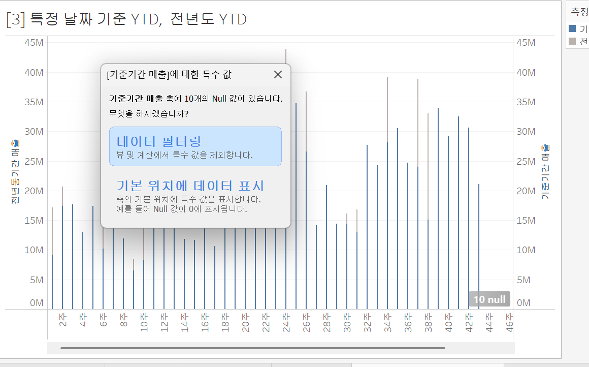 - 계산된 필드 이름 : 전년동기간 매출
